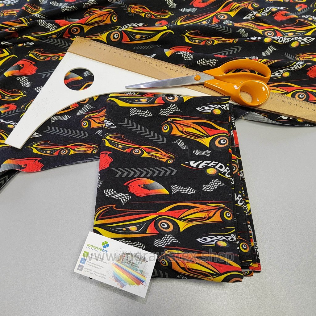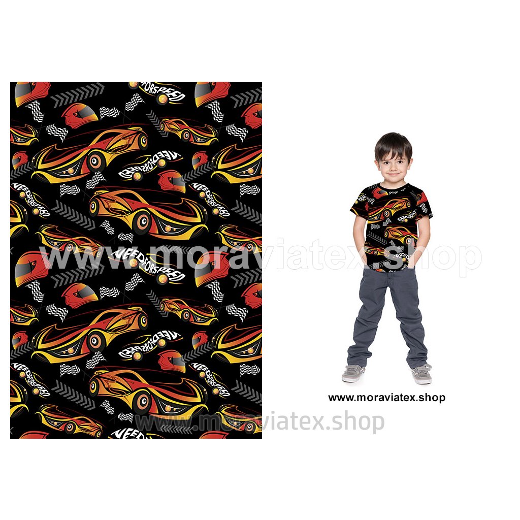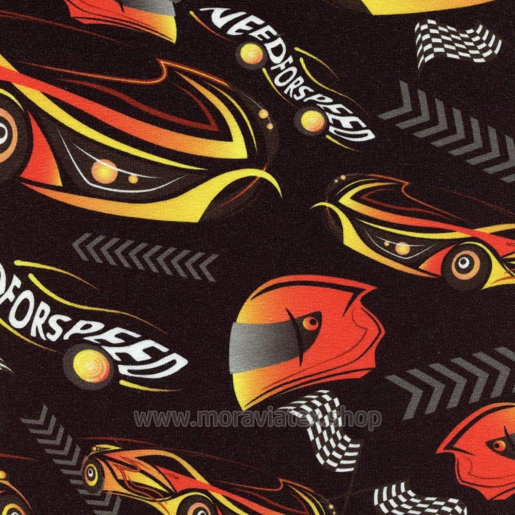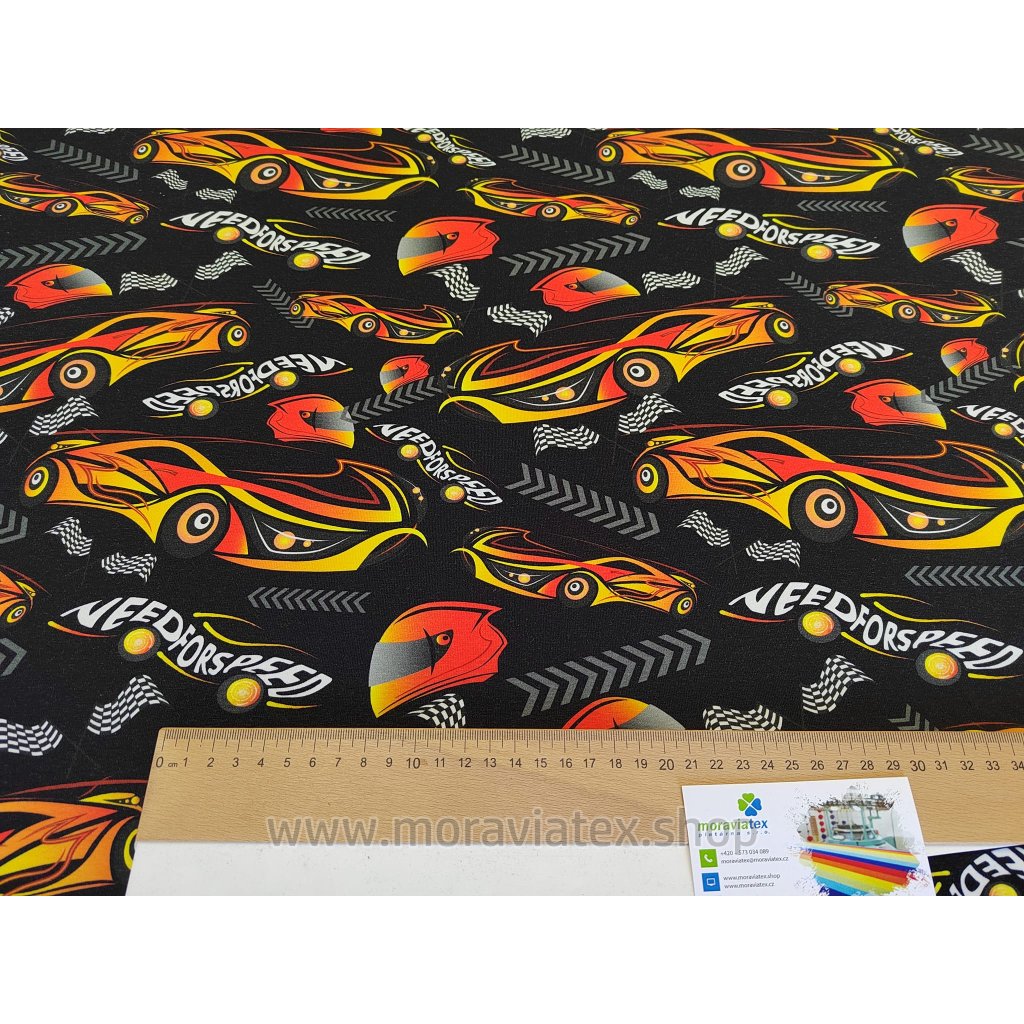Balíček 1 metr - Jednolíc elastický bavlna/Elastan 6% digi tisk NEED FOR SPEED (0,36kg)