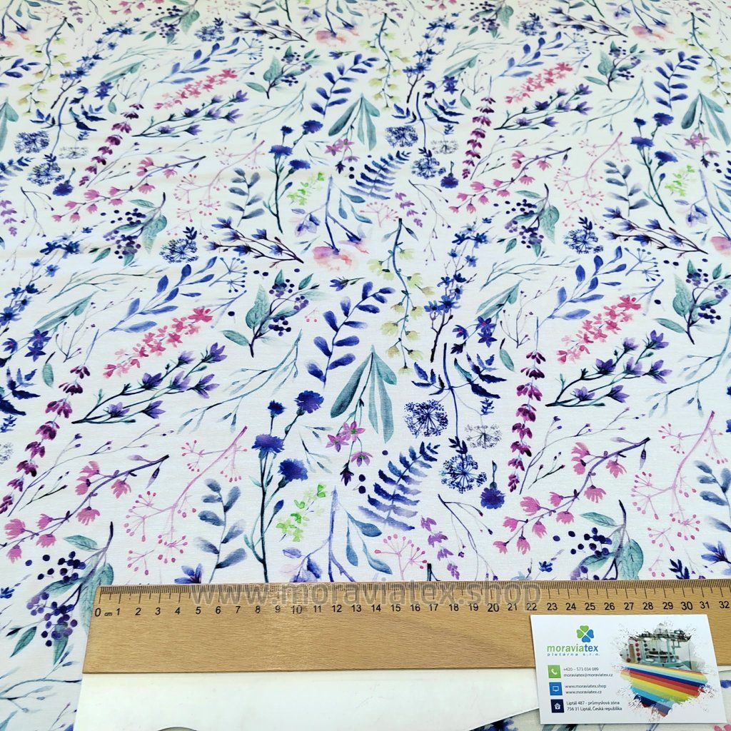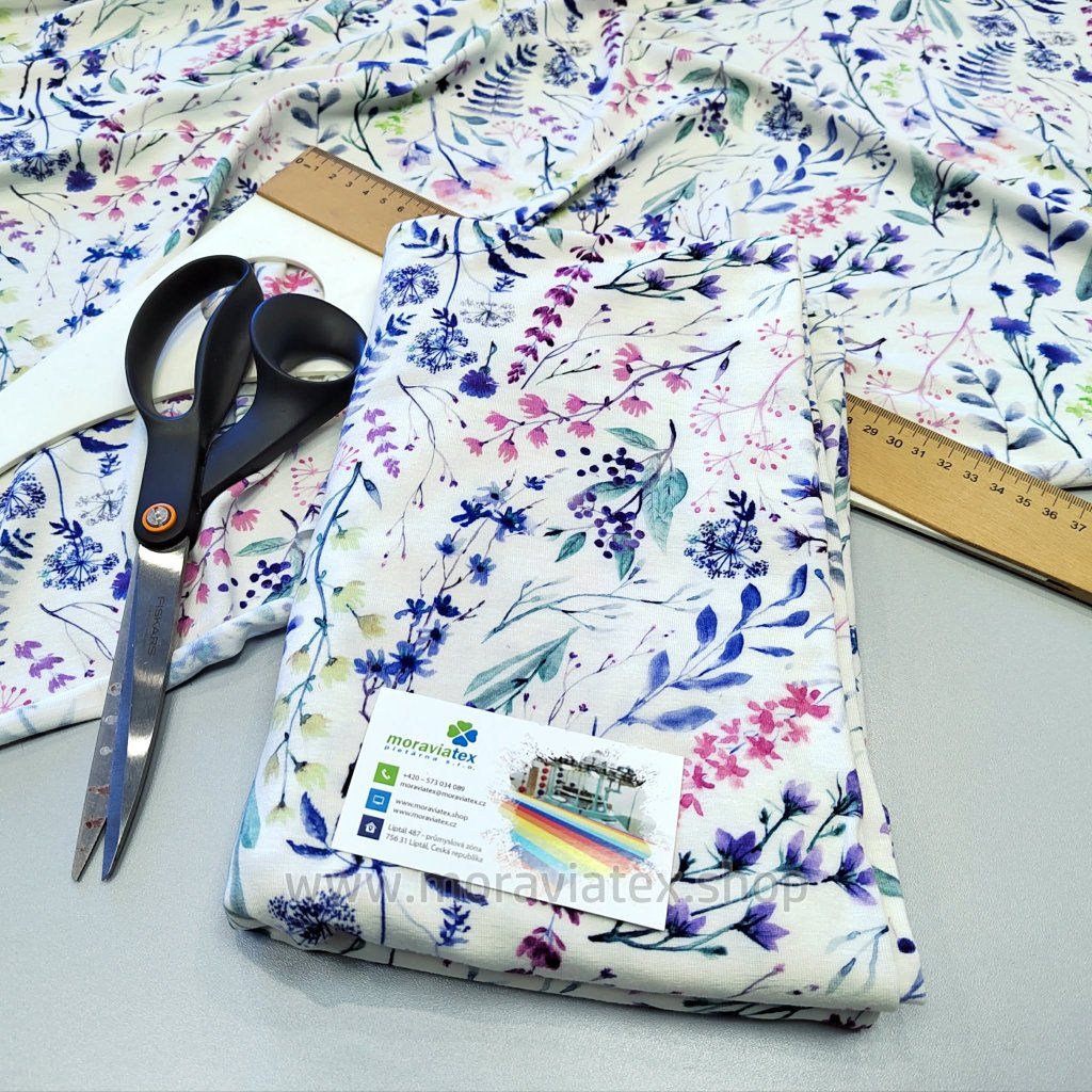 Balíček 1metr - Jednolíc elastický Bambus Viskóza/Elastan 6% digi tisk Luční kvítí (0,37kg)