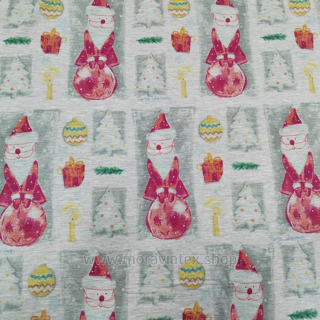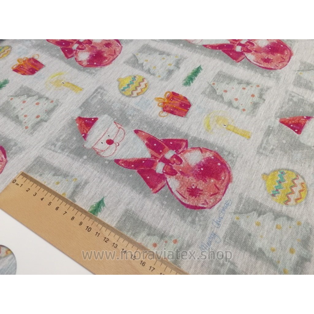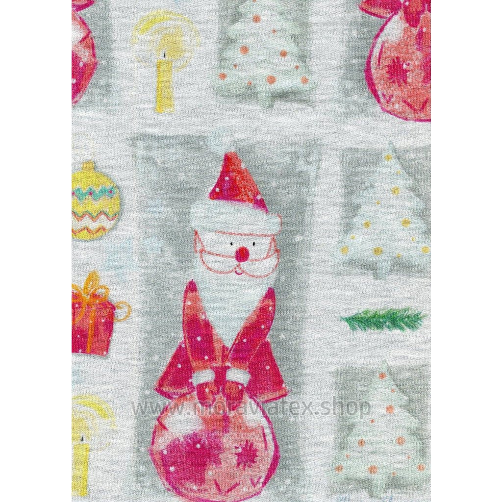 Balíček 1metr - Teplákovina šedé melé5% DIGI tisk Vánoční (0,44kg)