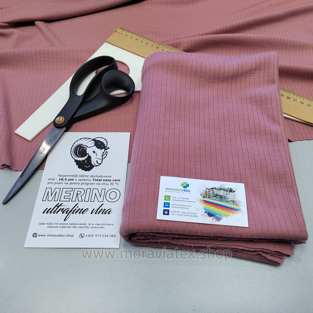 Balíček 1metr - Žebro 6/2 100% MERINO vlna ultrafine Dusty Rose (0,31kg)