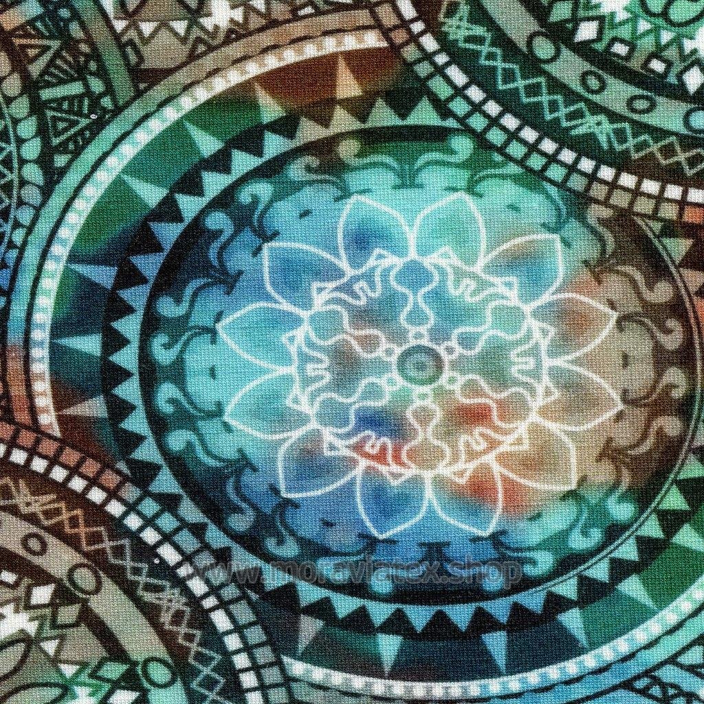 Jednolíc Bambus Viskóza/Elastan 6% digi tisk Mandala zelená