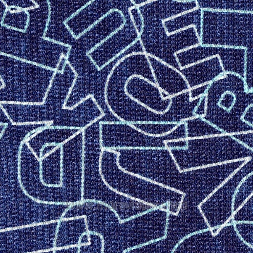 Jednolíc Bambus Viskóza/Elastan 6% digi tisk Písmena Jeans modré