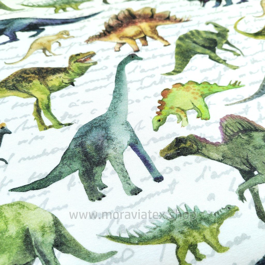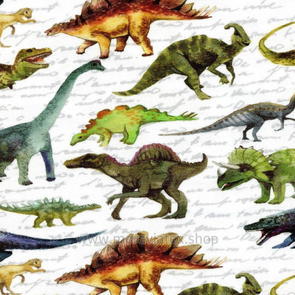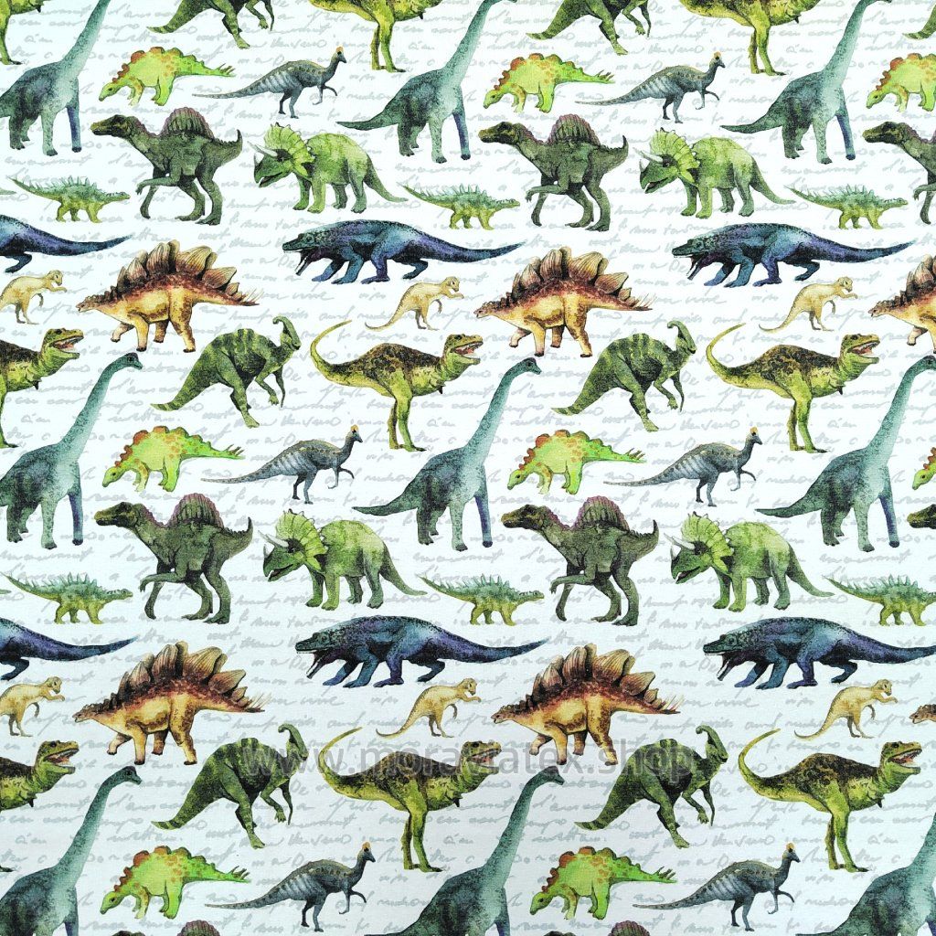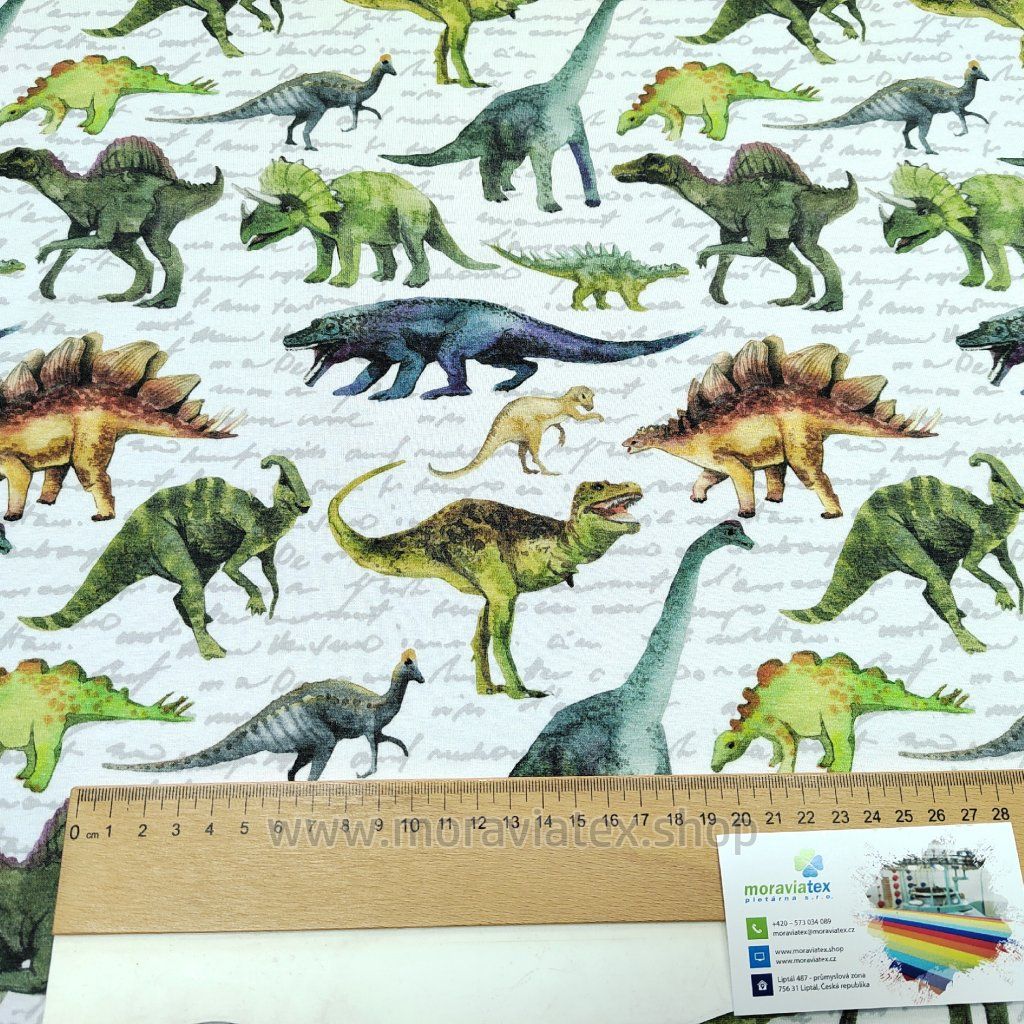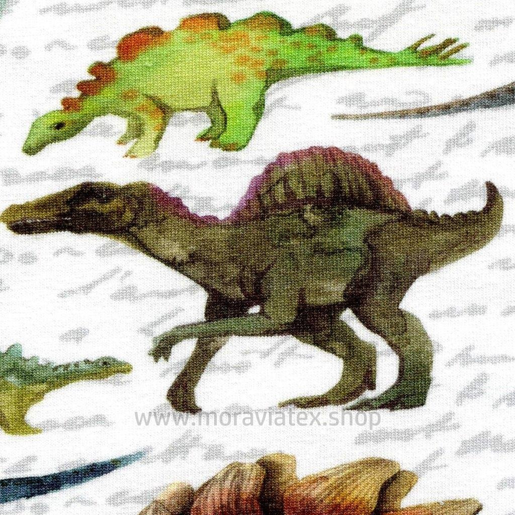 Jednolíc elastický bavlna/Elastan 6% bílý digi tisk Dinosauři