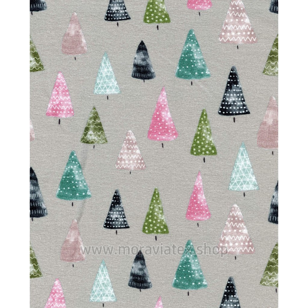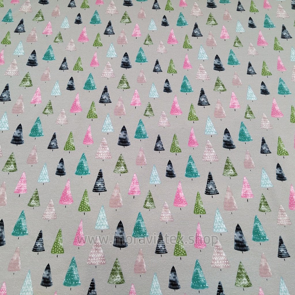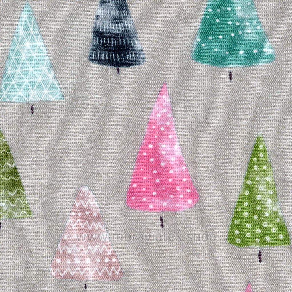 Jednolíc elastický bavlna/Elastan 6% digi tisk Stromečky