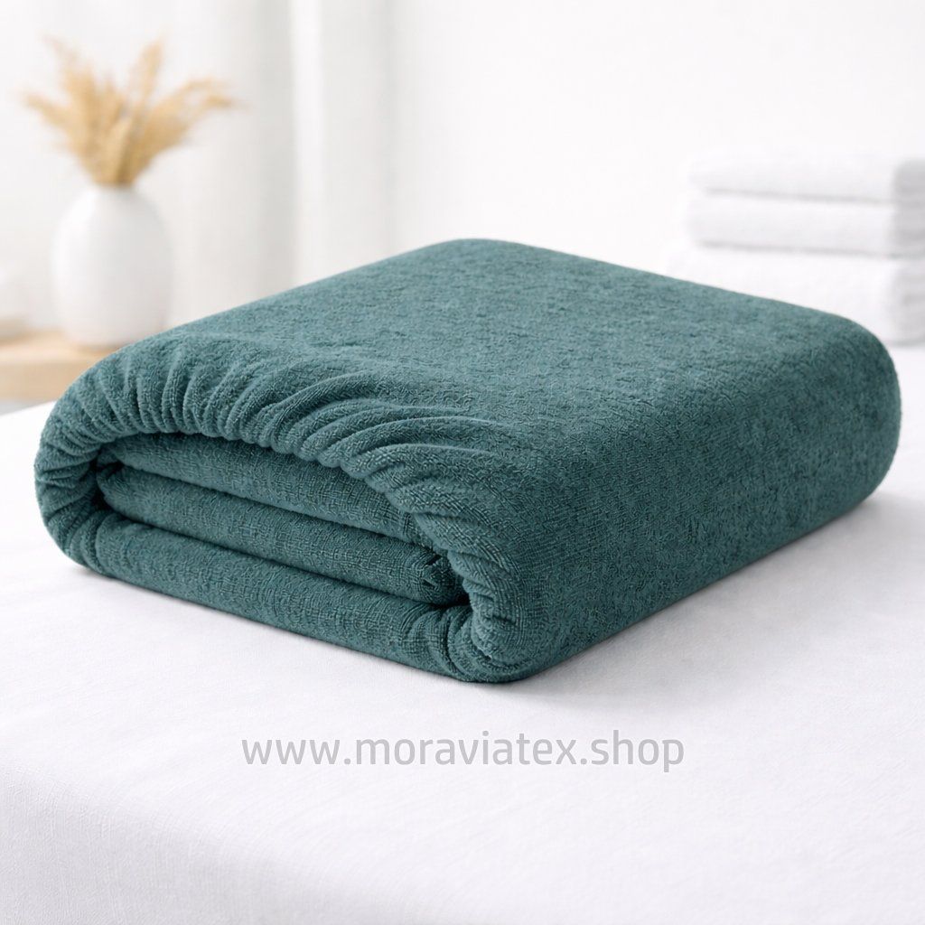 PROSTĚRADLO froté dvoulůžko 180x200cm tm.zelený melír