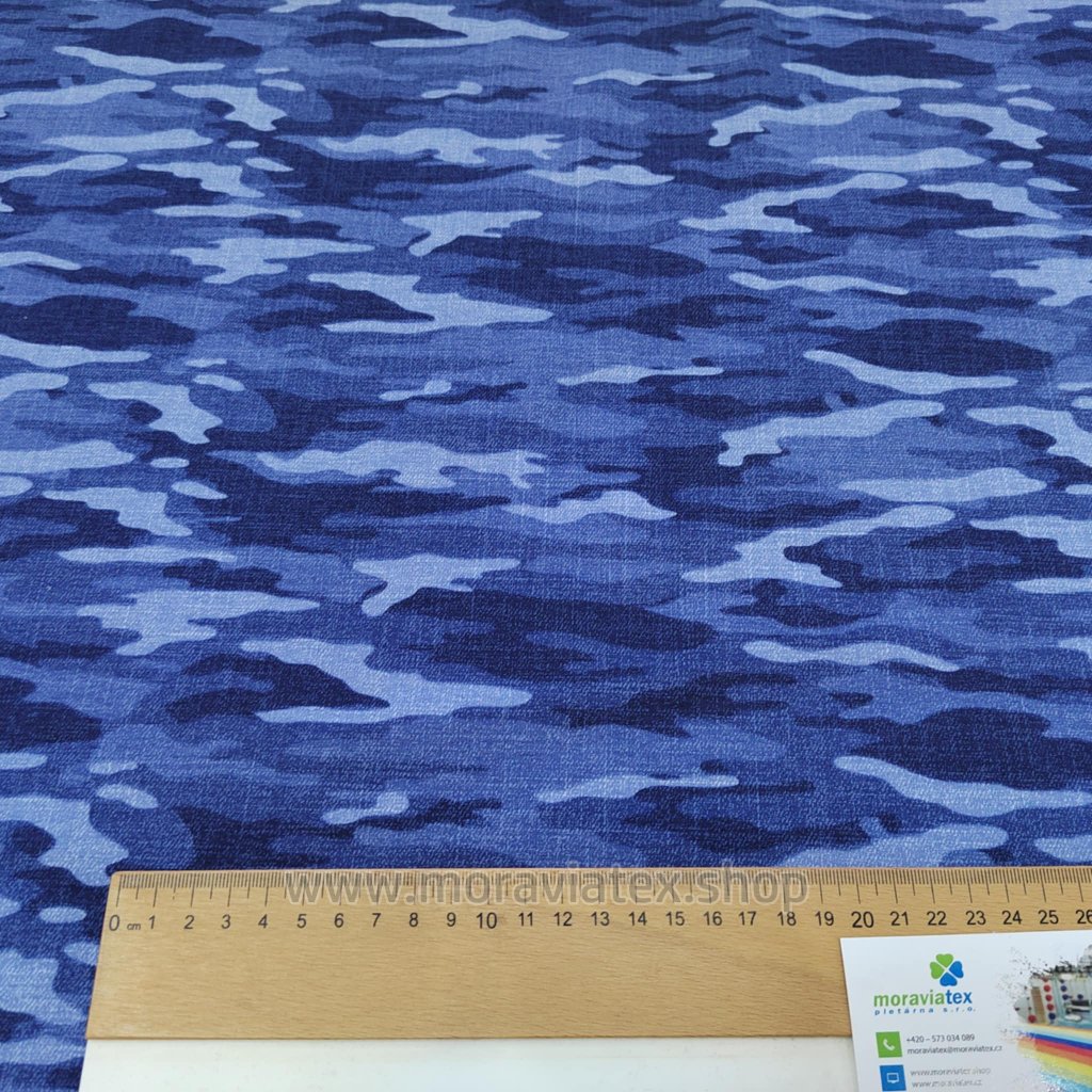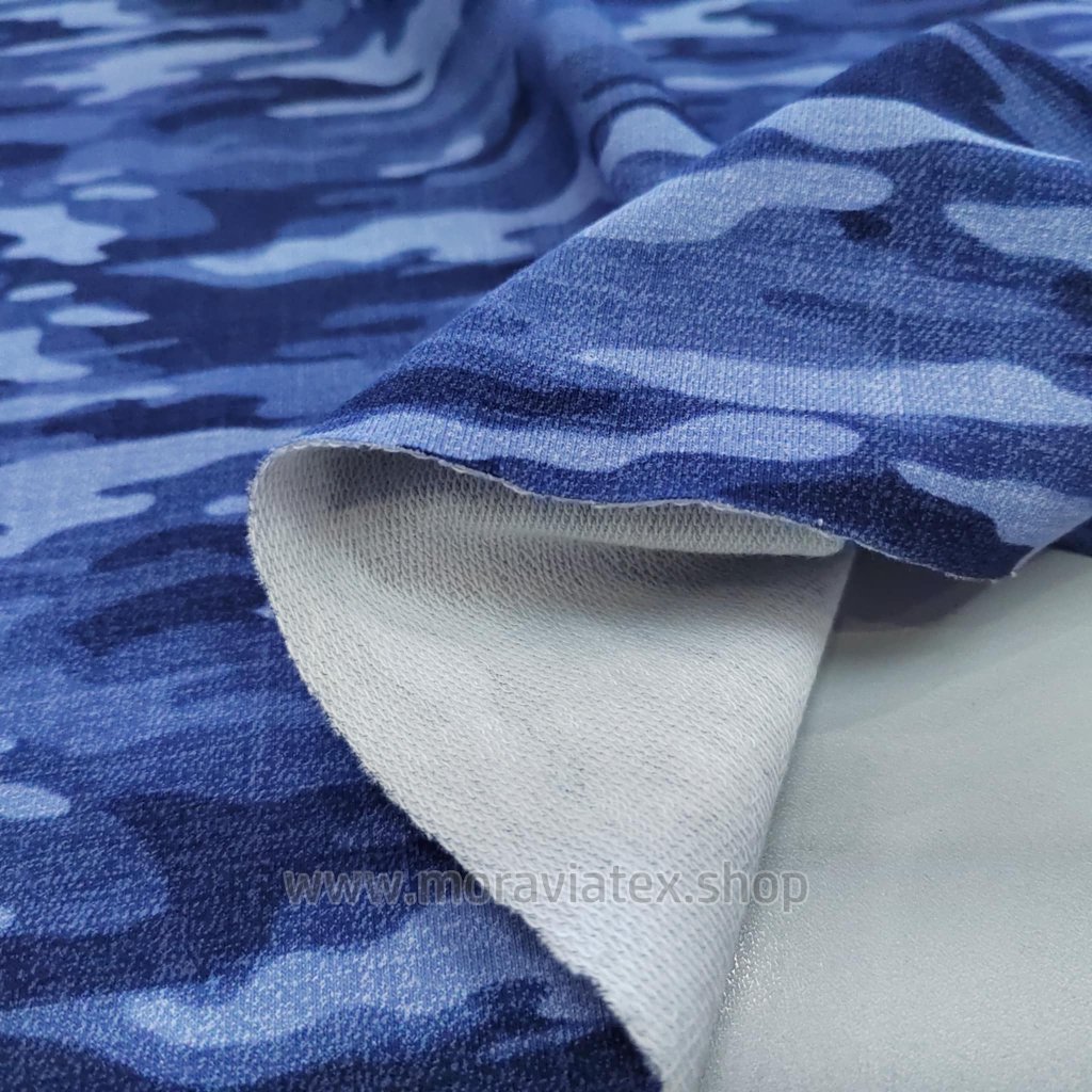 Teplákovina elastická potisk modrý MASKÁČ Jeans