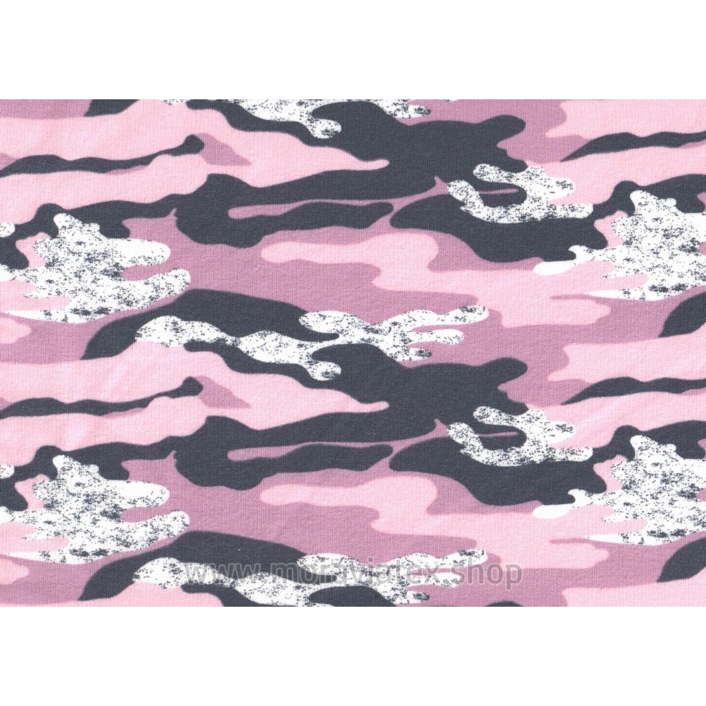 Teplákovina elastická potisk maskáč mramorový perla/šedý